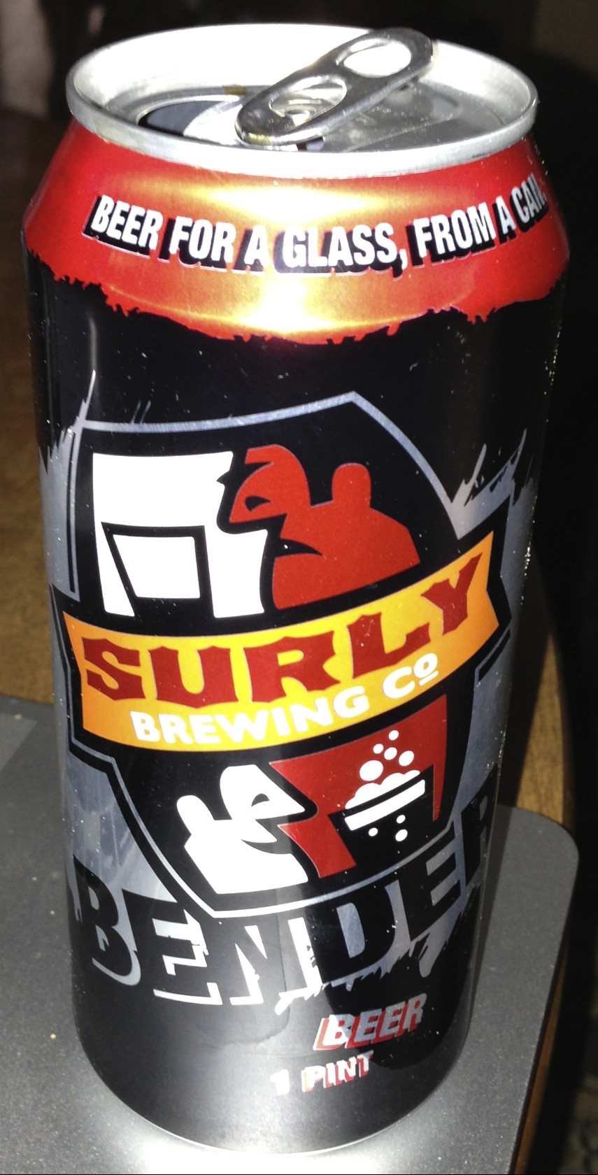 When some friends from Geronimo Wind sent me a care package that included a 4-pack of tall-boys from Surly Brewing Co. of Brooklyn Center, MN I had to split one with my dad. To my enjoyment there is now a good microbrew coming out of the great state of MN. If anyone in the midwest gets a chance they can now try a “local” oatmeal brown ale in the Surly Bender.